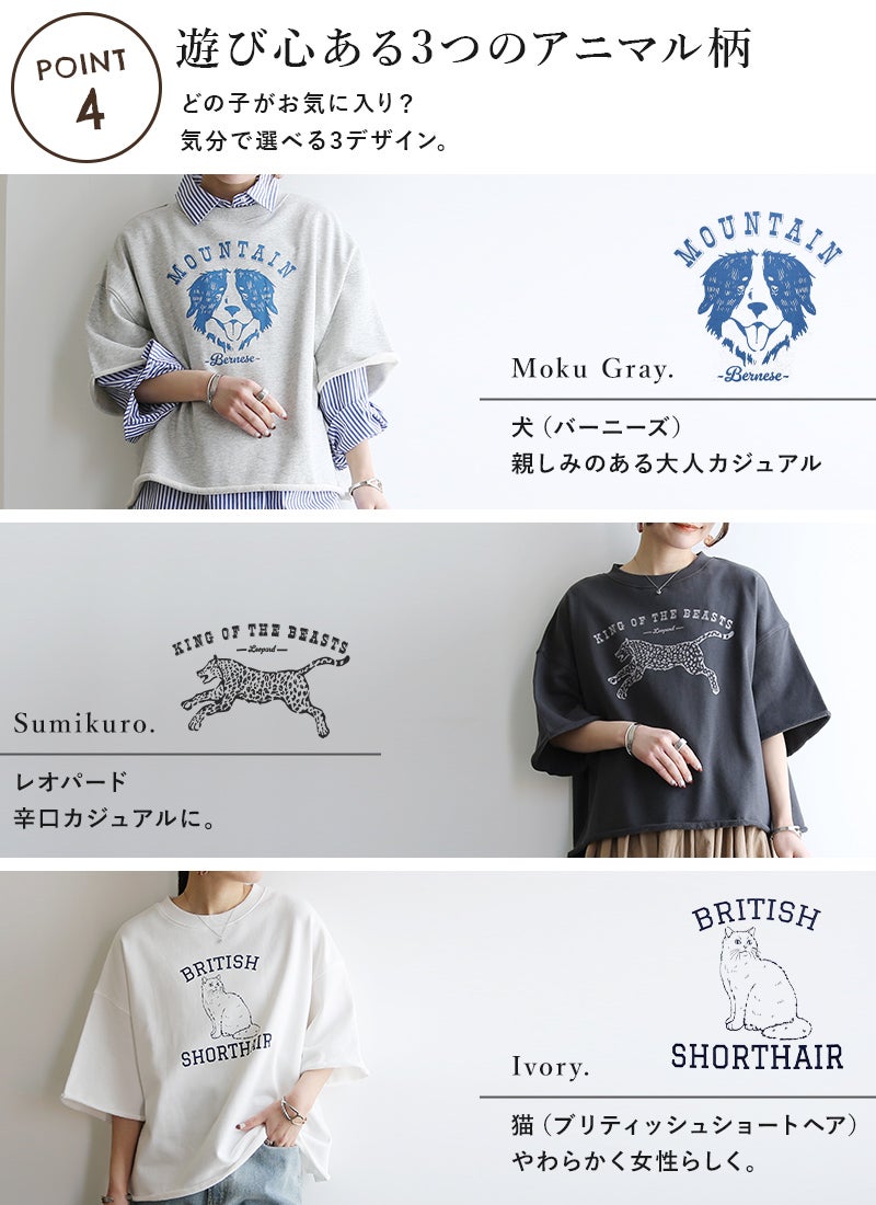 他の画像を見る カットオフの抜け感と、遊び心あるアニマルプリントがかわいい。 「シンプルなのに、ちゃんとおしゃれ」が叶う1枚。 ミニ裏毛プリントカットオフプルオーバー M-L 【メール便対応可】 新商品 販売価格 ¥ 3,298 税込 カートに入れる お気に入りに登録する