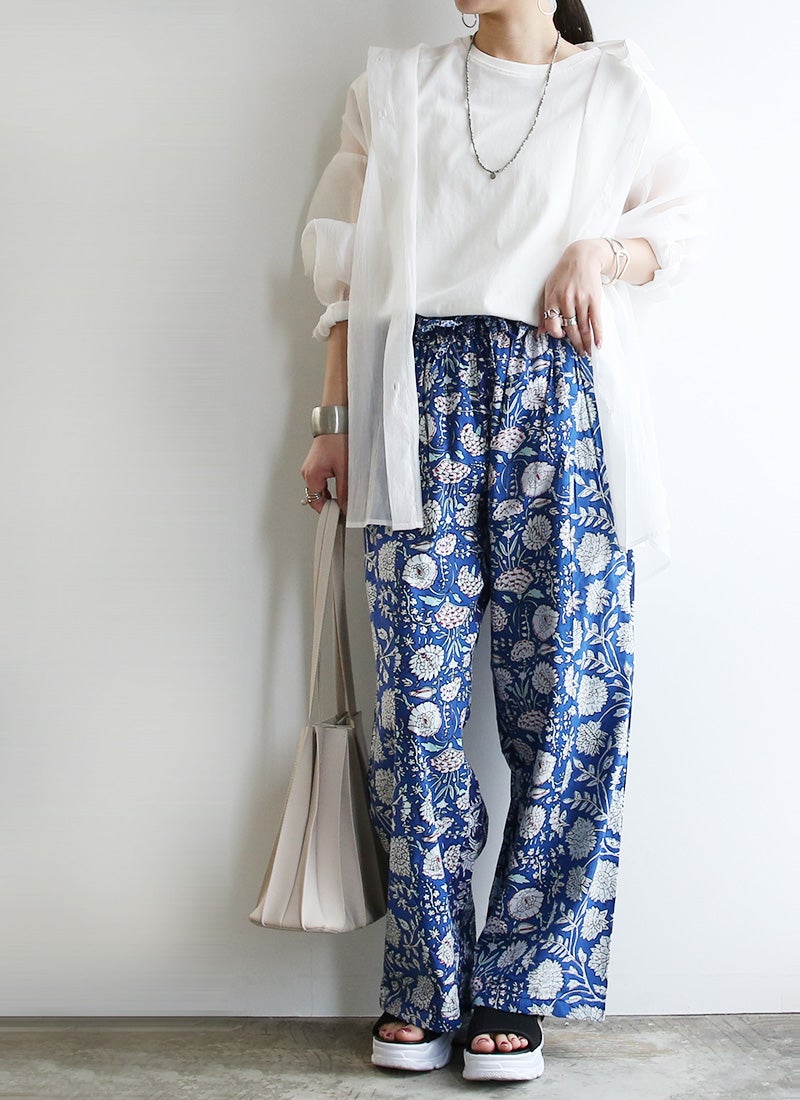 他の画像を見る インド綿の涼やかさで、ラクして映える大人のエスニック柄パンツ。ゆったりとしたイージーパンツスタイルで、リラックスした着心地を楽しめます インド綿柄パンツ F 【メール便対応可】 新商品 販売価格 ¥ 2,999 税込 カートに入れる お気に入りに登録する