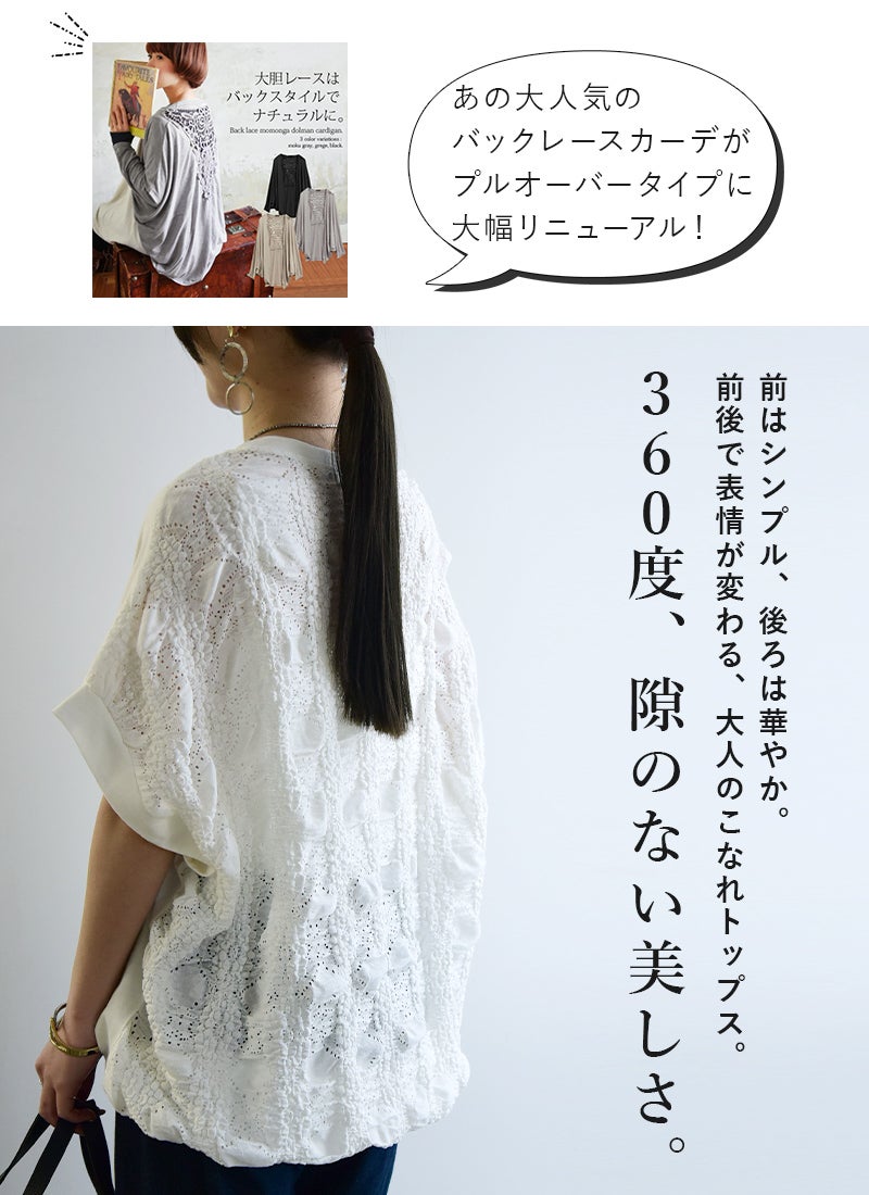 他の画像を見る あの大人気のバックレースカーデを大幅リニューアル! バックスタイルに大胆レースをあしらいナチュラルに バックレース切り替えTシャツ F 【メール便対応可】 新商品 販売価格 ¥ 2,399 税込 カートに入れる お気に入りに登録する