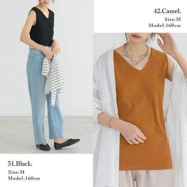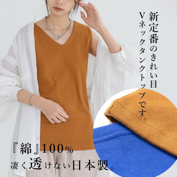 5. [日本製]凄く透けない大人カワイイVネックタンクトップ F 【メール便対応可】