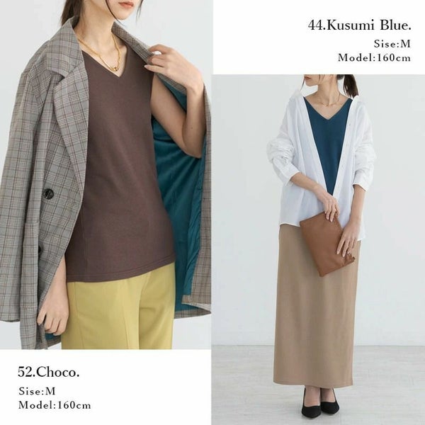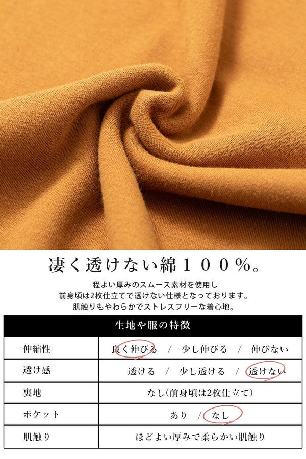 インナーが透けない2枚仕立て構造!日本製の綿100%で安心感◎首元すっきりVネックデザイン☆