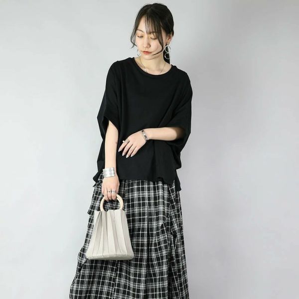 このカットソーは、シンプルでありながらスタイリッシュなデザインが特徴です。ゆったりとしたワイドシルエットが、リラックスした着心地を提供します。クルーネックとドルマンスリーブが、カジュアルでありながら洗練された印象を与えます。オフホワイト、チャコール、ブラックの3色展開で、さまざまなコーディネートに対応可能です。春夏の軽やかな装いにぴったりの一枚です。