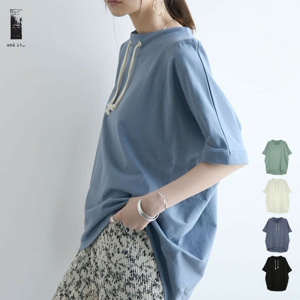 プルオーバー レディース 春 夏 ルーズ ハイネック ドルマン トップス 半袖 綿100% コットン シンプル 着回し アイボリー ライトグリーン ライトブルー ブラック 白 黒 andit_ and it_ andit ANDIT_ ANDIT あんどいっと アンドイット SS 新作 NEW カジュアル ナチュラル きれいめ 大人可愛い 大人女子 お洒落 トレンド シンプル ニュアンス 春服 夏服 M Mサイズ 春服 夏服 ゆったり 楽ちん ラフ 体型カバー ぽっちゃり プチプラ ファッション レディースファッション ママ服 20 30 40 50 20代 30代 40代 50代