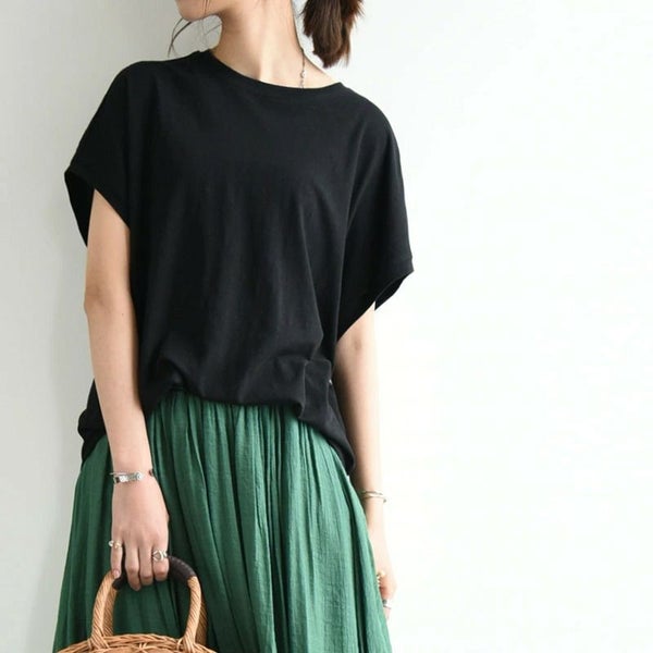 5. コットンスラブシンプルルーズTシャツ M L 【メール便対応可】