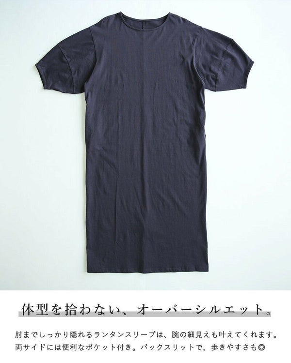 5. ランタンスリーブカットソーワンピース M L 【メール便対応可】