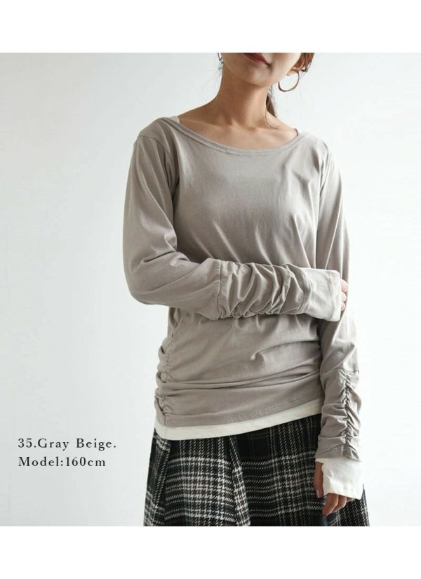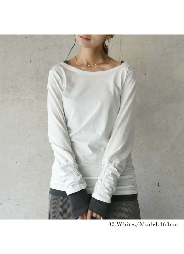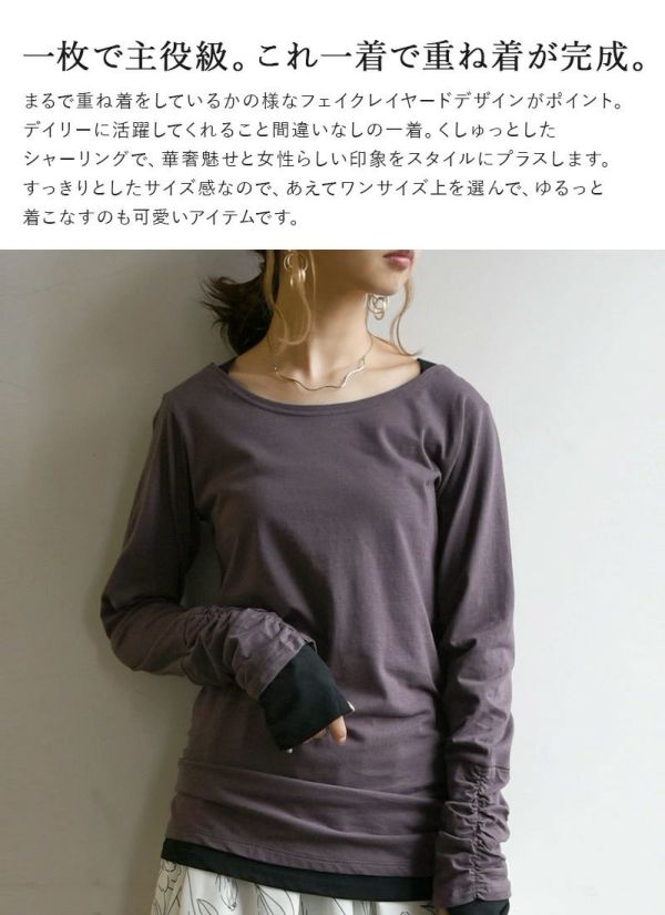 - フェイクレイヤードくしゅくしゅシャーリングカットソー M L LL 3L 4L 【メール便対応可】
