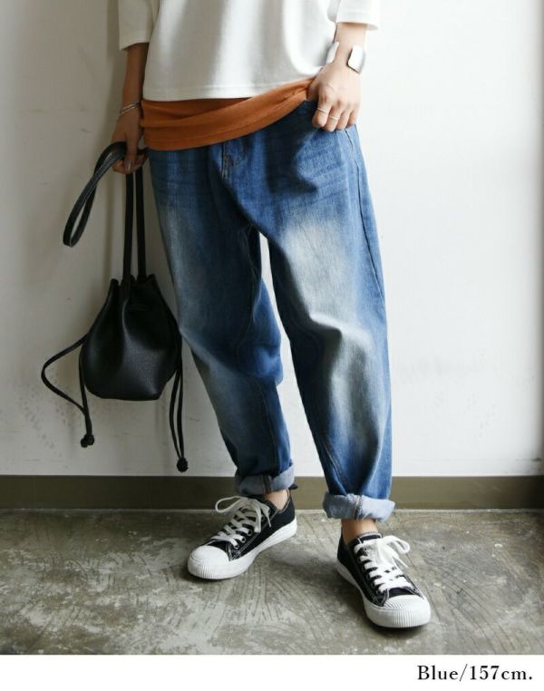 - 深ゆるまたサルエルデニムパンツ S M L LL 3L 4L 【メール便対応不可】