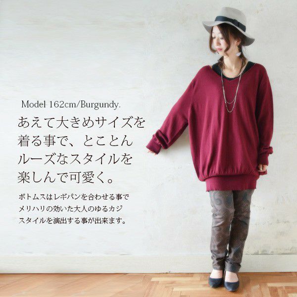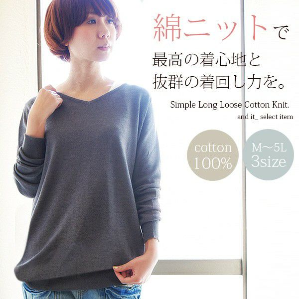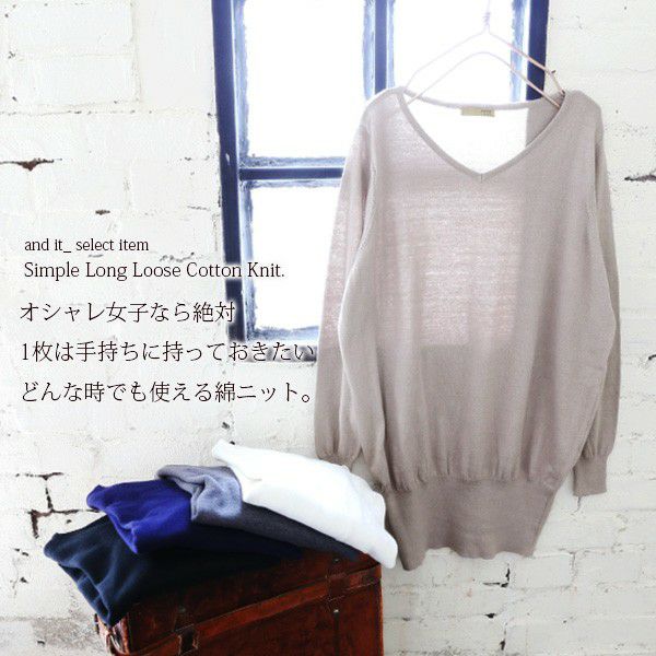 - 【受注発注】シンプルロングゆったりコットンニット 【メール便対応不可】