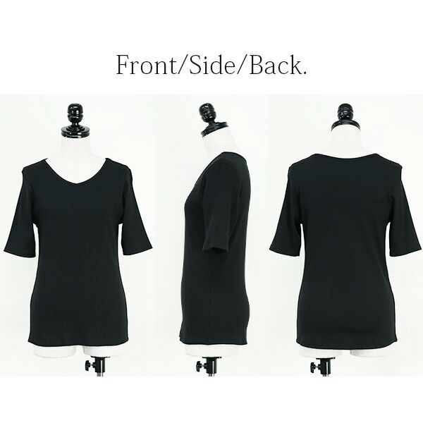 【受注発注】Vネック5分袖コットンリブTシャツ 【メール便対応可】