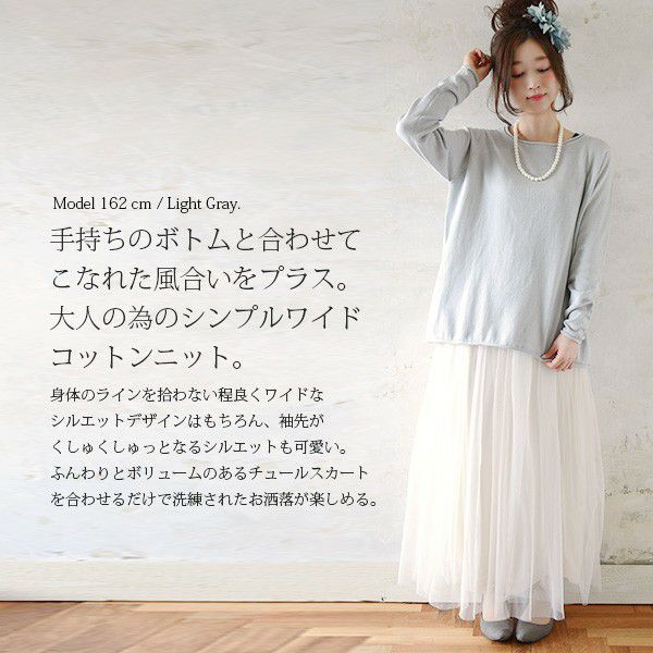 他の画像を見る チクチク感のない綿100%ニットの優しい肌触りが◎シンプルなワイドシルエットで着回し力も優秀! シンプルカラーロングコットンニット 【メール便対応可】 販売価格 ¥ 3,199 税込 在庫切れ カートに入れる お気に入りに登録する