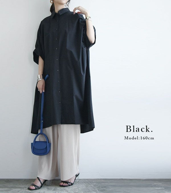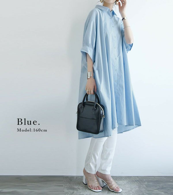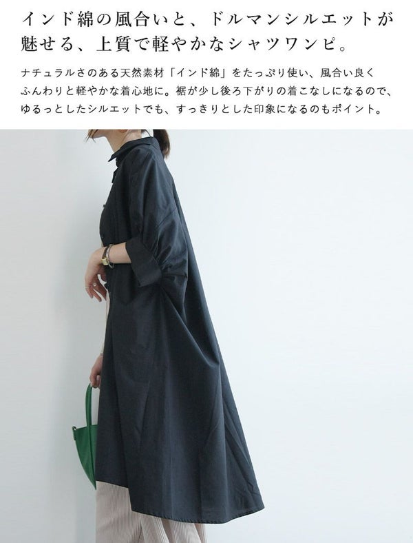 - インド綿ドルマンシャツワンピース M L 【メール便対応可】