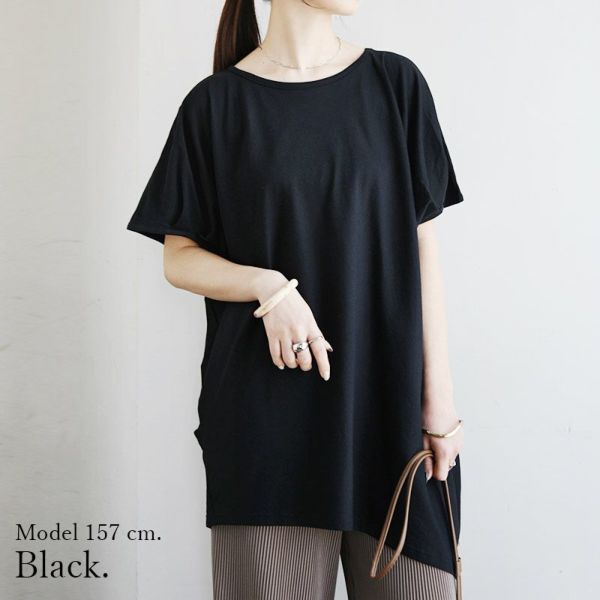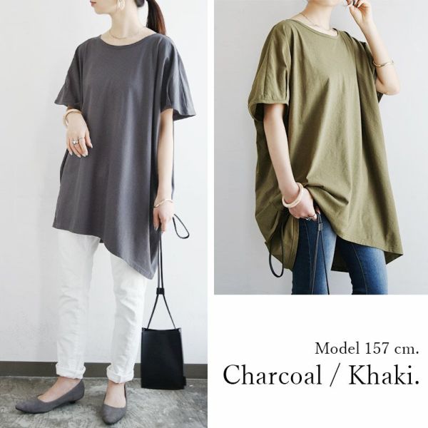 - アシメシルエットコットンロングカットソー M L LL 3L 4L 5L 【メール便対応可】