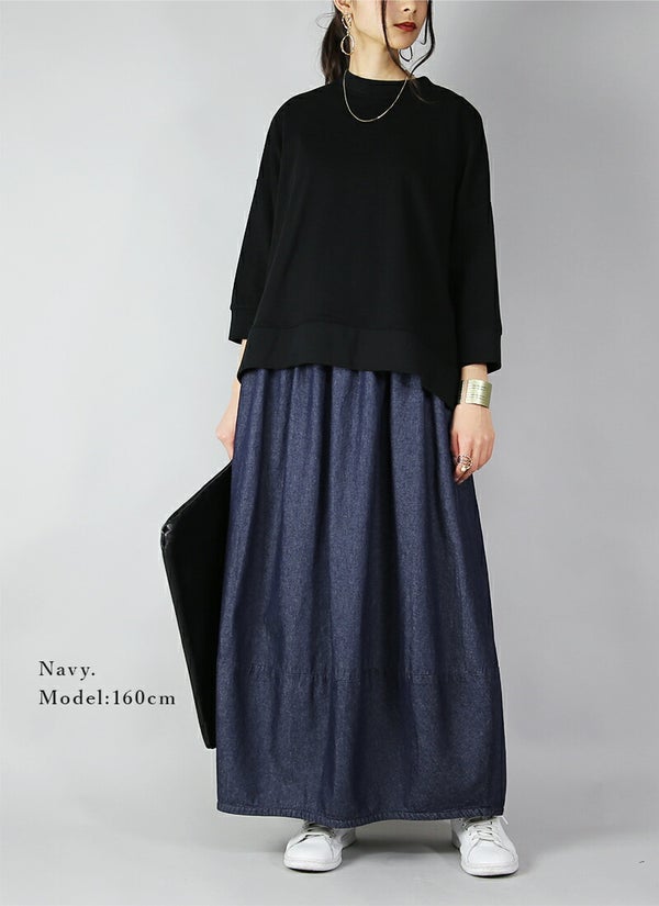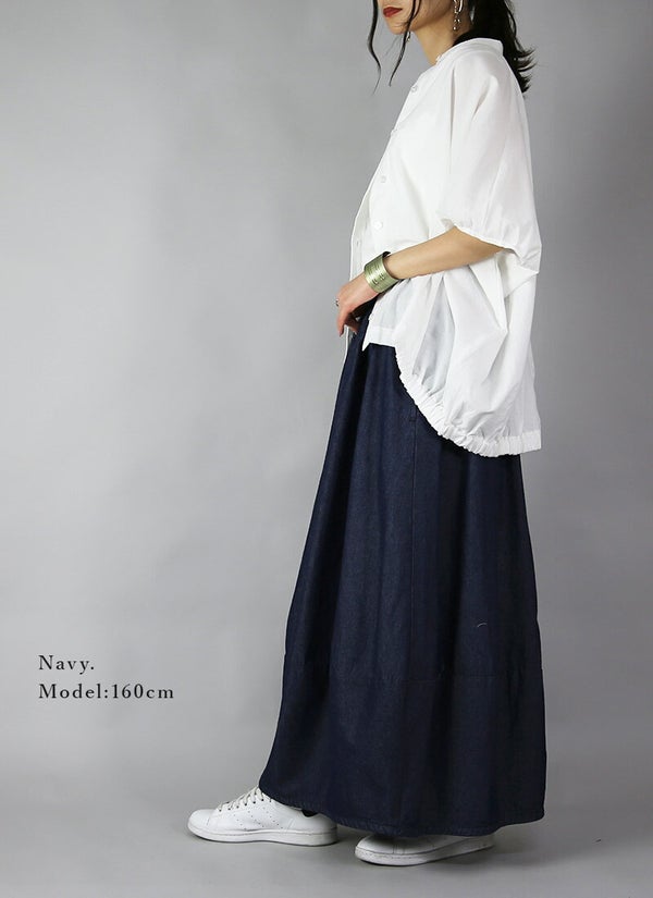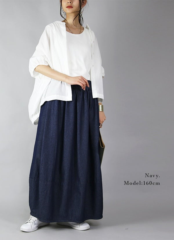 スカート レディース バルーンシルエット ライトデニム ロングスカート ロング丈 綿100% コットン バルーンスカート バルーン ロング ロングスカート ウエストゴム デニムスカート デニム ネイビー 新作 NEW ニュー カジュアル かじゅある ナチュラル なちゅらる 女性 綺麗 綺麗目 綺麗め きれいめ キレイメ キレイめ きれい キレイ 可愛い かわいい カワイイ カッコいい かっこいい 格好良い カッコイイ 大人 オトナ おとな オトナカワイイ おとなかわいい 大人可愛い 大人女子 おとなじょし オトナジョシ お洒落 おしゃれ オシャレ トレンド 旬 とれんど 流行 こなれ感 こなれ 高見え 上質 上品 シンプル ニュアンス ラクチン らくちん 楽ちん 楽 動きやすい ゆったり ゆる ゆったりサイズ ゆるカジ ゆるい ゆるファッション 体型カバー プラスサイズ 大きいサイズ ビッグ ビック big ビックシルエット ビッグシルエット ビックサイズ ビッグサイズ オーバーサイズ オーバー フリーサイズ フリー S M L LL 2L XL 3L XXL LLL 着痩せ 着回し 華奢見せ 華奢見え ベーシック プチプラ ファッション レディースファッション レディファ カジュアルコーデ 大人コーデ オトナコーデ 大人カジュアルコーデ きれいめコーデ きれいめカジュアルコーデ オフィスカジュアルコーデ オフィスカジュアル オフィス テレワーク リモートワーク リモート オンライン飲み会 飲み会 打ち上げ ご飯会 ランチ おうち時間 お家時間 デート お出かけ フェス リゾート ビーチ 海 旅行 飛行機 パーティー パーティ 韓国ファッション 韓国コーデ 韓国風 韓国 母の日 母のひ プレゼント ギフト 贈り物 クリスマス 誕生日 春 夏 秋 冬 春夏 秋冬 andit_ and it_ andit ANDIT_ ANDIT あんどいっと アンドイット 20 30 40 50 60 20代 30代 40代 50代 60代