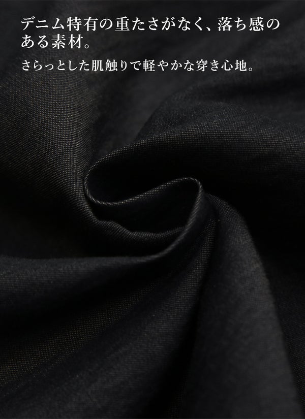 このデニムパンツは、軽やかな着心地とシンプルなデザインが特徴です。コットンとテンセルの混紡素材を使用し、柔らかく快適な履き心地を提供します。ウエストゴム仕様で、ストレスフリーなフィット感を実現。程良いゆとりがあり、体型をカバーしつつ、どんなコーディネートにも合わせやすいのが魅力です。春から秋にかけてのデイリーウェアとして最適で、ラフなスタイルを楽しむことができます。