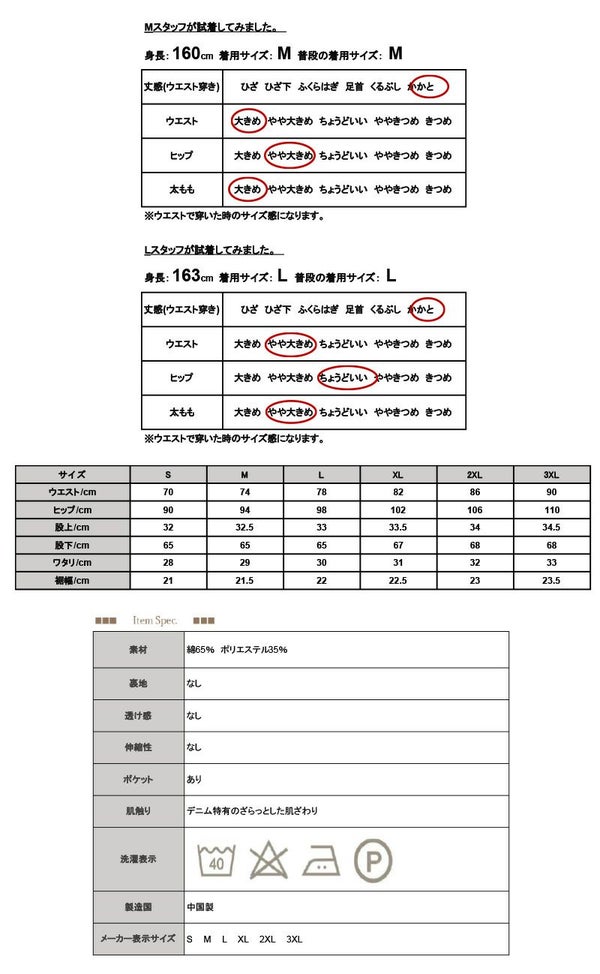 お財布にやさしいセミワイドデニムパンツ S M L XL 2XL 3XL 【メール便対応不可】
