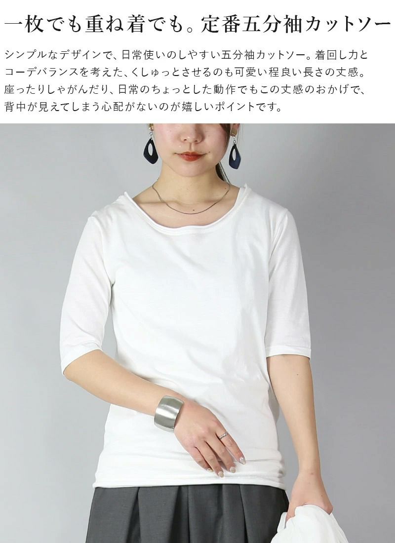 シンプルカラー5分袖ロングカットソー M L LL 【メール便対応可】