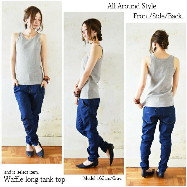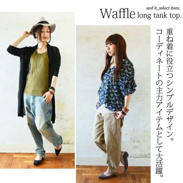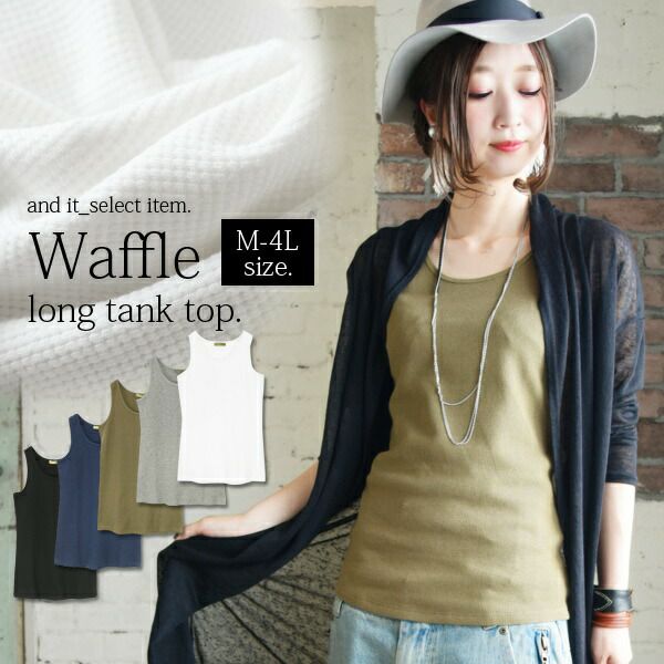 【受注発注】ワッフルロングタンクトップ 【メール便対応可】