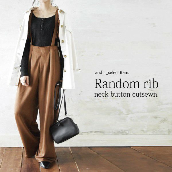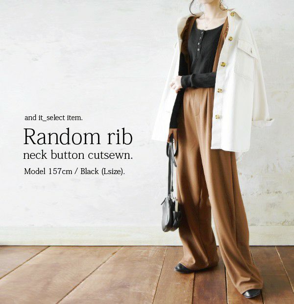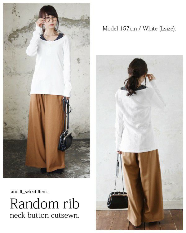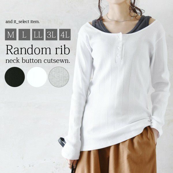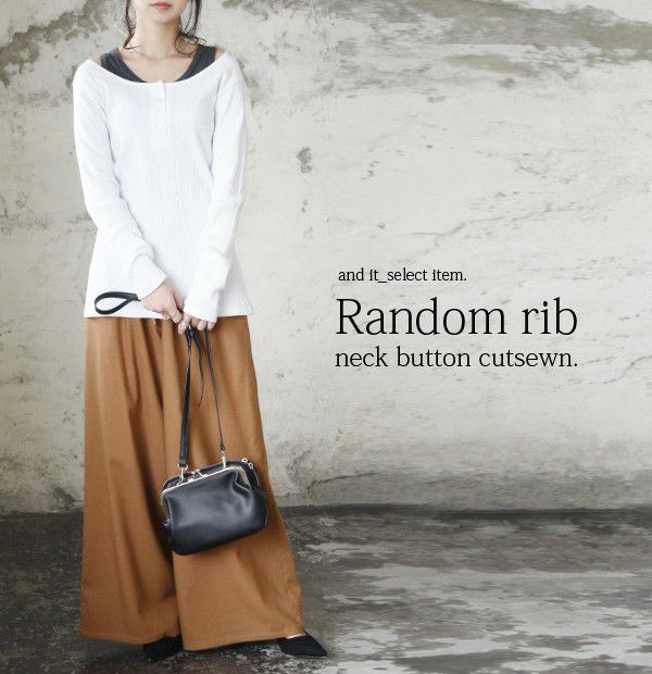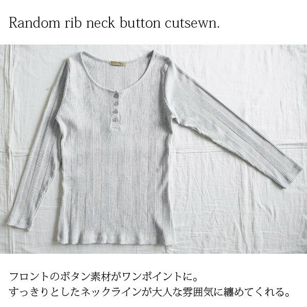 【受注発注】ランダムリブネックボタンカットソー 【メール便対応可】