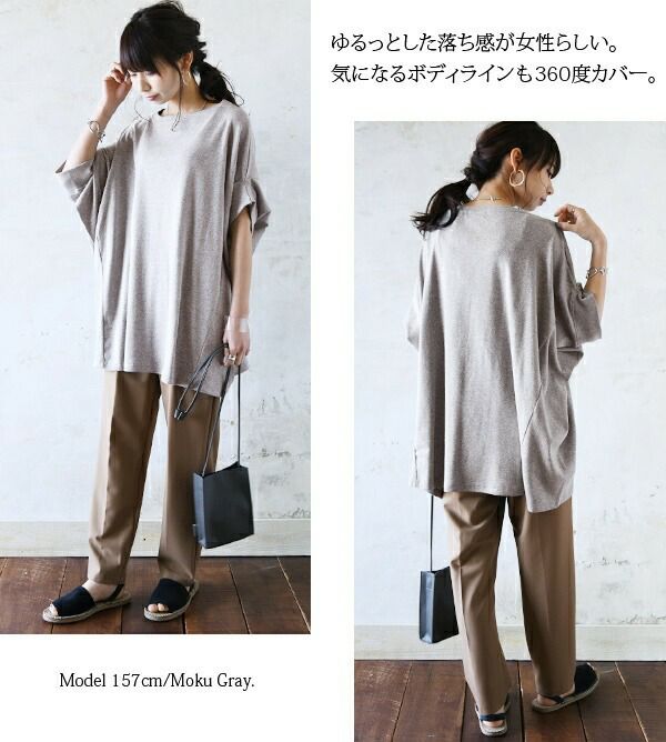 [LL-3L]サイズを着用。身体のラインに沿わないワイドなシルエットなので体型カバーができました☆ドルマンシルエットでアームホール周りもゆったりとしているので、窮屈感のない着心地です!