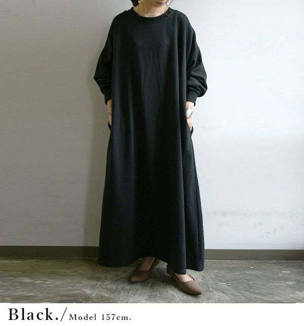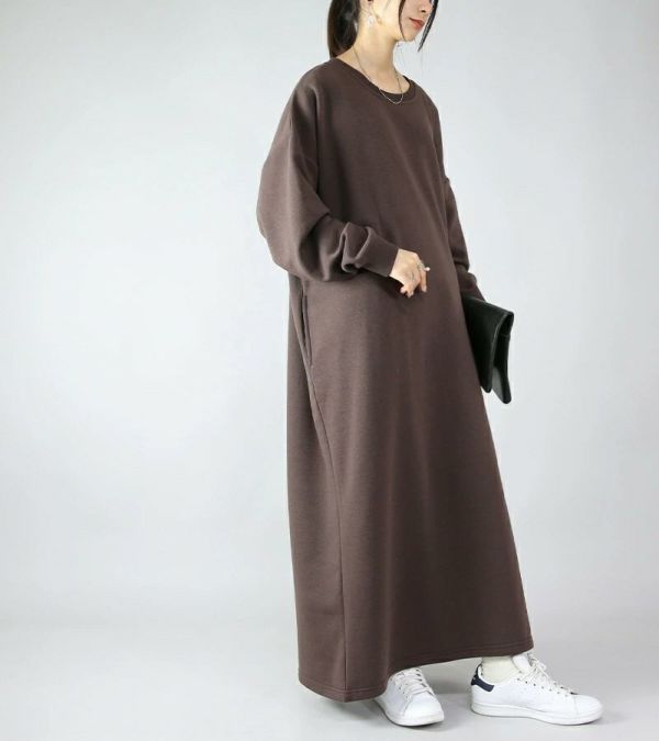 一枚で可愛い、一枚で暖かい。裏起毛×マキシ丈であたたかさ抜群!リラックスしながらお洒落もぬくもり感も楽しめるワンピース♪
