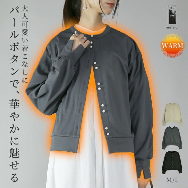 トップス レディース 裏起毛 カット カルゼ パールボタン パール風 カーディガン カーデ 長袖 羽織り あったか 暖かい ふんわり 起毛 防寒 冷え性対策 寒さ対策 軽い 軽量 重ね着 レイヤード きれいめ 大人可愛い シンプル ノーカラー ボリューム袖 ボリュームスリーブ グレージュ ダークグレー ブラック 黒 秋 冬 24aw AW, M L エム エル andit_ and it_ andit ANDIT_ ANDIT あんどいっと アンドイット 新作 NEW カジュアル ナチュラル きれいめ 大人可愛い 大人女子 お洒落 トレンド シンプル ニュアンス プチプラ ファッション レディースファッション 20 30 40 50 20代 30代 40代 50代