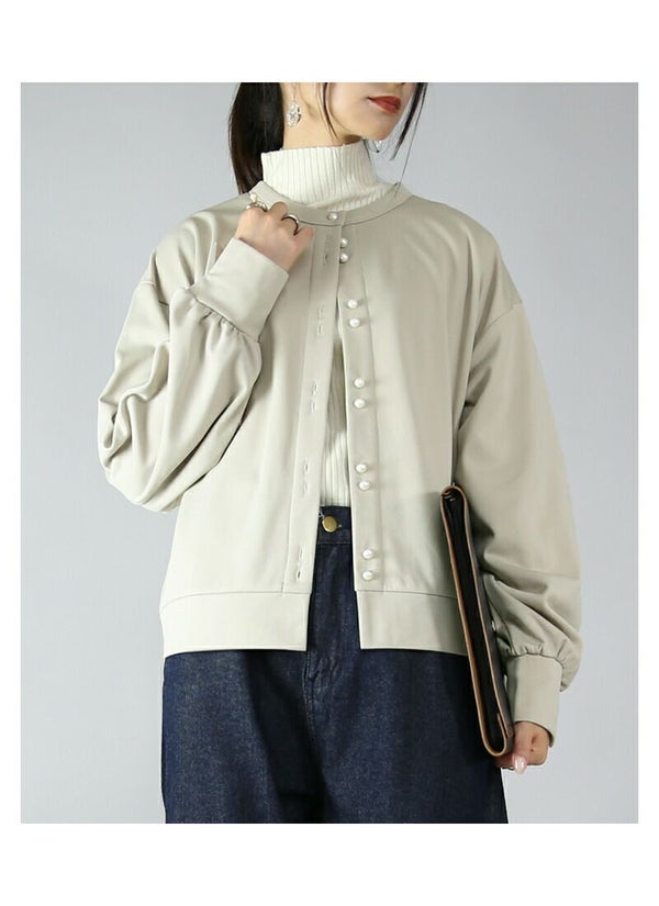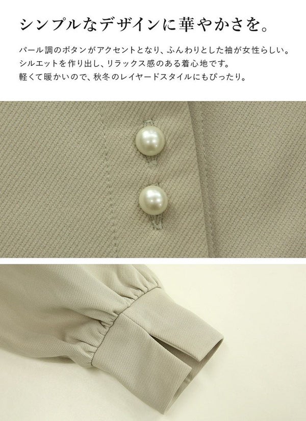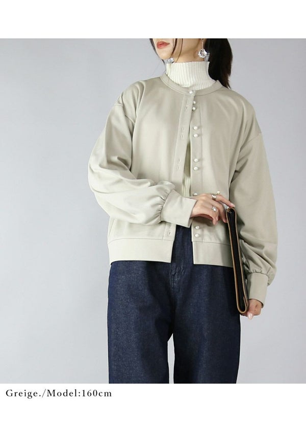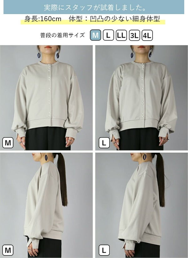 女性らしいパールが上品な印象に。どんなボトムスにも合わせやすい丈感で重ね着が楽しくなる♪