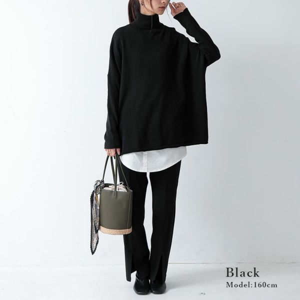 コットンニットワイドタートルネックトップス M-L 【メール便対応不可】