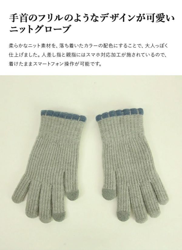 手袋 レディース スマホ対応 バイカラー 配色 フリル ニット ファッション 小物 てぶくろ スマフォ対応 寒さ対策 冷え性対策 防寒 あったか 暖かい シンプル 大人可愛い お洒落 スモークブルー ライトグレー ブラック 黒 秋 冬 24aw AW, andit_ and it_ andit ANDIT_ ANDIT あんどいっと アンドイット 新作 NEW カジュアル ナチュラル きれいめ 大人可愛い 大人女子 お洒落 トレンド シンプル ニュアンス プチプラ ファッション レディースファッション 20 30 40 50 20代 30代 40代 50代