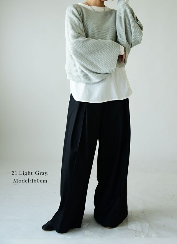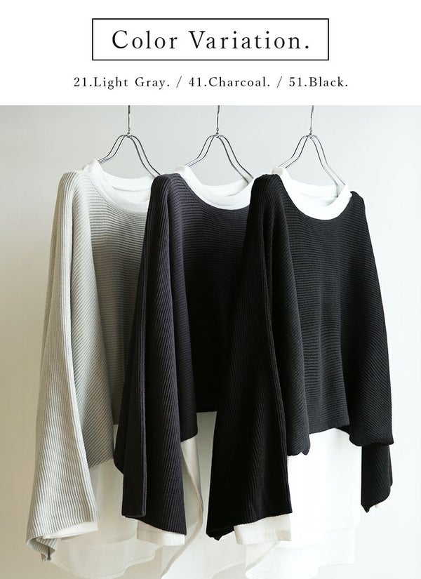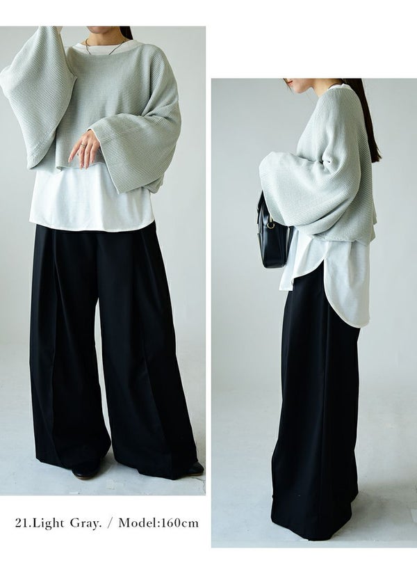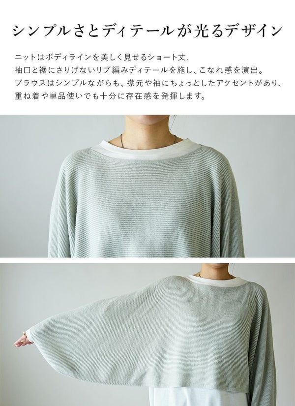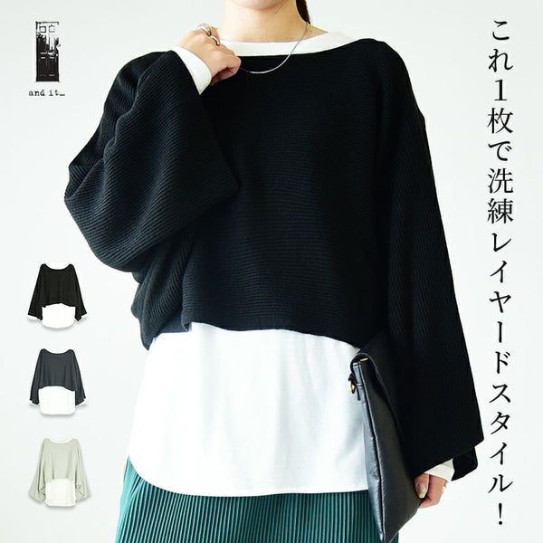 ニット レディース ショート丈 レイヤード セット カットソー インナー トップス 重ね着 2点セット 長袖 お洒落 トレンド 大人可愛い ワイド ゆったり 楽ちん ラフ ラウンドヘム ボリューム袖 ボリュームスリーブ リップル編み 上品 きれいめ ブラック チャコール ライトグレー 黒 秋 冬 24aw AW, M-L M L andit_ and it_ andit ANDIT_ ANDIT あんどいっと アンドイット 新作 NEW カジュアル ナチュラル きれいめ 大人可愛い 大人女子 お洒落 トレンド シンプル ニュアンス プチプラ ファッション レディースファッション 20 30 40 50 20代 30代 40代 50代