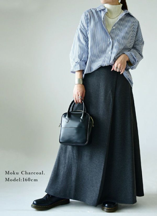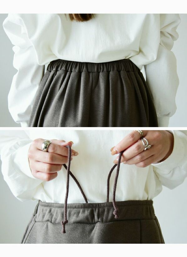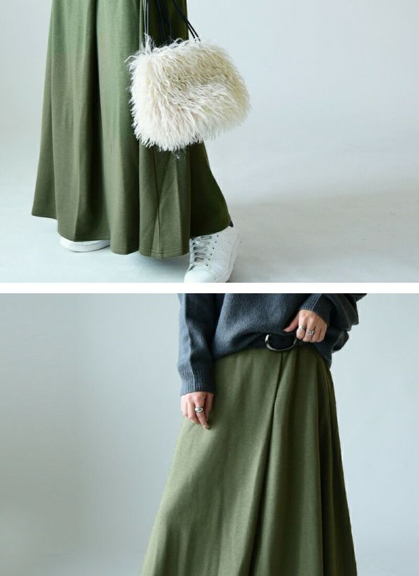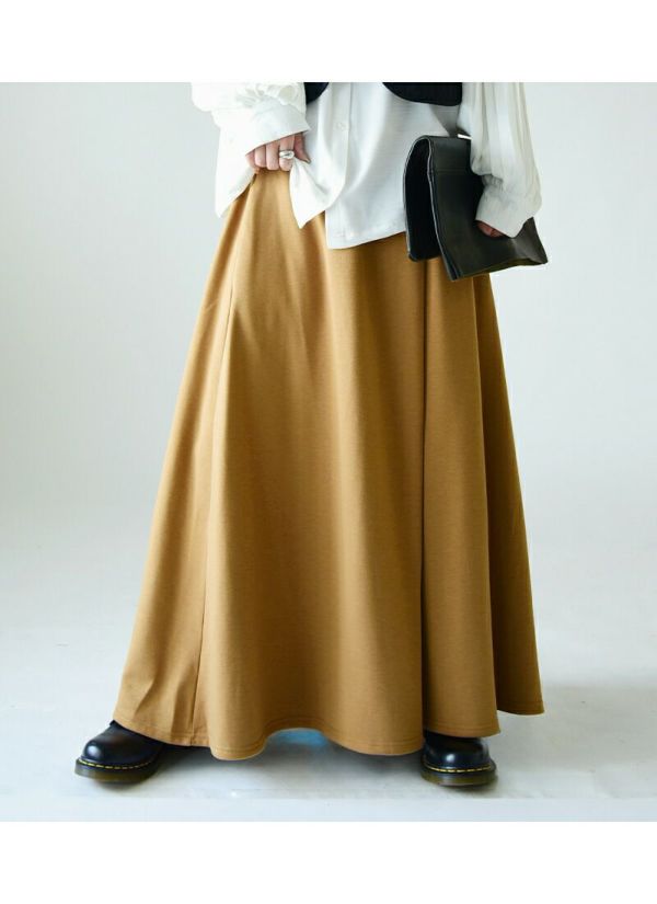 Aラインが女性らしくたっぷりロング丈で大人っぽい印象に。ふんわり裏シャギーが暖かい穿き心地♪
