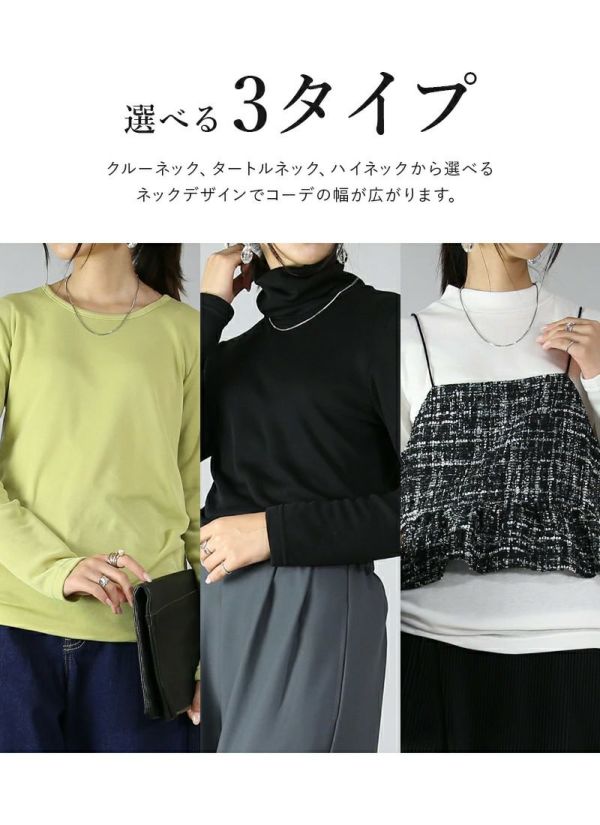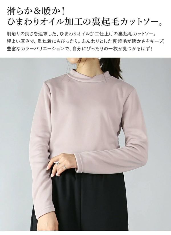寒さ対策はこれで決まり!あったかシンプルカットソー。ひまわりオイル加工でしっとり心地良い肌触り♪