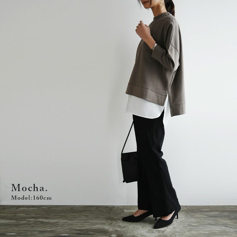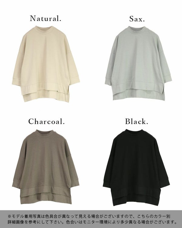 カットソー レディース 春夏 七分袖 7分袖 スリット ワイド プルオーバー トップス ヘビーウェイト 厚手 ゆったり ワイド 無地 シンプル サイドスリット カジュアル デイリー ロングシーズン 着回し 綿 コットン サックス ナチュラル モカ ブラック 黒 M-L M Mサイズ L Lサイズ andit_ and it_ andit ANDIT_ ANDIT あんどいっと アンドイット SS 新作 NEW カジュアル ナチュラル きれいめ 大人可愛い 大人女子 お洒落 トレンド シンプル ニュアンス ゆったり 楽ちん ラフ 体型カバー ぽっちゃり プチプラ ファッション レディースファッション ママ服 20 30 40 50 20代 30代 40代 50代