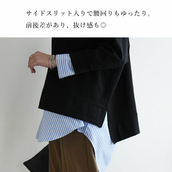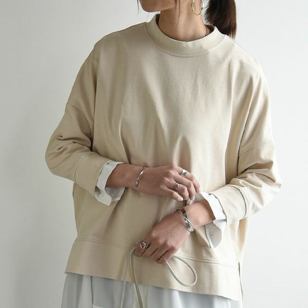 七分袖スリットワイドプルオーバー M-L 【メール便対応可】
