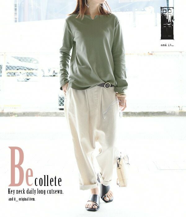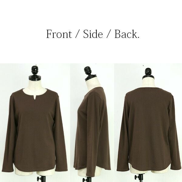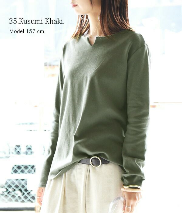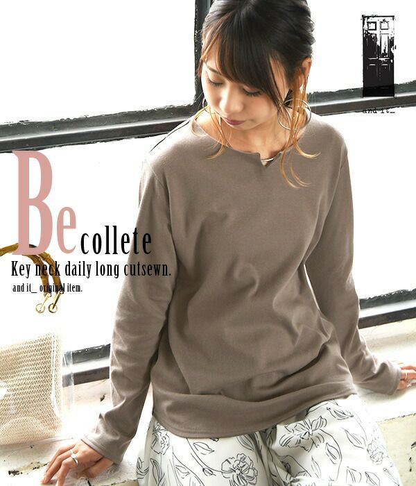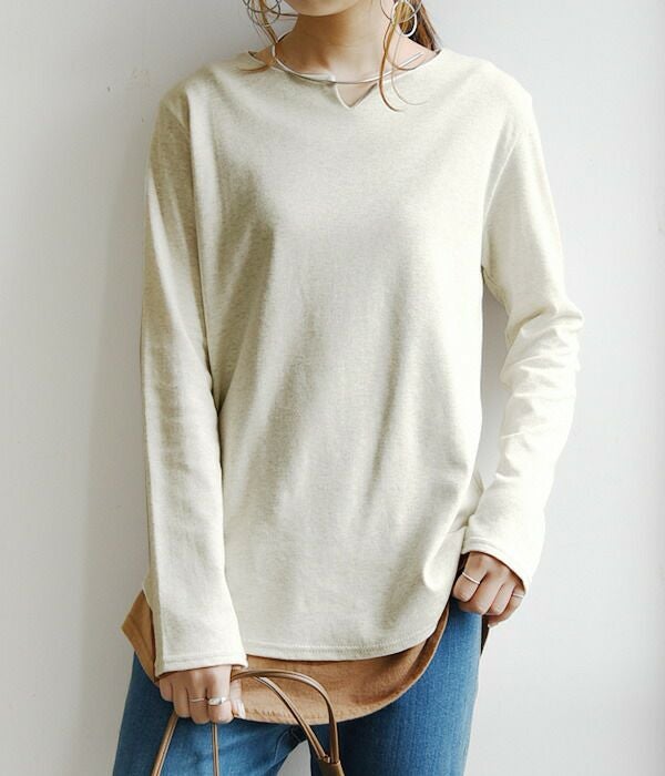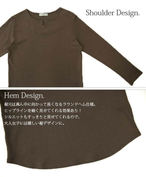 極上の綿100%&MadeinJapan!キーネックがお洒落な大人のカットソー☆ 綿100% 日本製 メイドインジャパン デイリー 無地 シンプル Beコルテキーネックデイリーロングカットソー F 【メール便対応可】