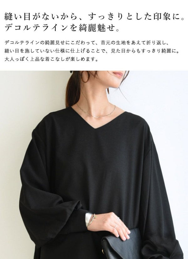 5. リネンライクシームレスVネック長袖プルオーバー F 【メール便対応可】
