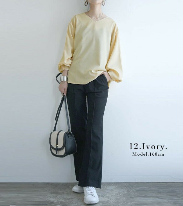 トップス レディース 長袖 リネンライク シームレス Vネック プルオーバー 夏秋冬 リネンライク スッキリ 大人 袖タック ボリュームスリーブ ボリューム袖 きれいめ 綺麗め オフィス オフィスカジュアル 上品 シンプル スミクロ ダークグリーン アイボリー andit_ and it_ andit ANDIT_ ANDIT あんどいっと アンドイット AW 新作 NEW カジュアル ナチュラル きれいめ 大人可愛い 大人女子 お洒落 トレンド シンプル ニュアンス F Fサイズ フリーサイズ ゆったり 体型カバー ぽっちゃり プチプラ ファッション レディースファッション ママ服 20 30 40 50 20代 30代 40代 50代