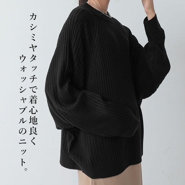 ドルマンシルエットで体型カバーも叶う!洗濯機で洗えるお手入れ簡単ニット♪
