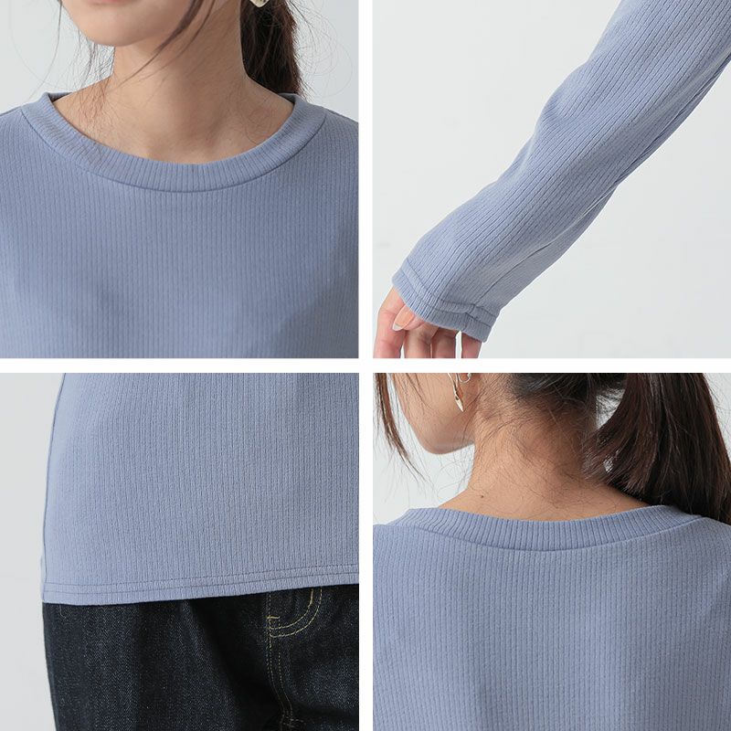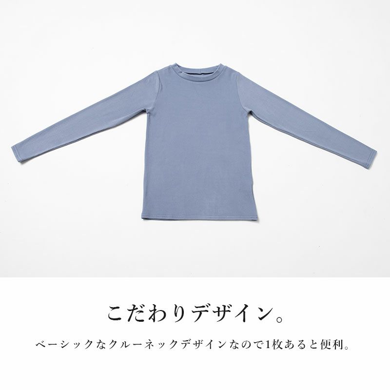 起毛リブで見た目もあったか♪重ね着としても大活躍のすっきりクルーネックデザイン。