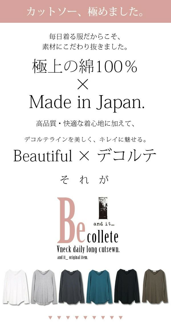 他の画像を見る 日本製の綿100%で着心地も抜群◎上品なデコルテラインでラフなのに綺麗見せ! BeコルテVネックデイリーロングカットソー M L LL 【メール便対応可】 販売価格 ¥ 3,298 税込 カートに入れる お気に入りに登録する