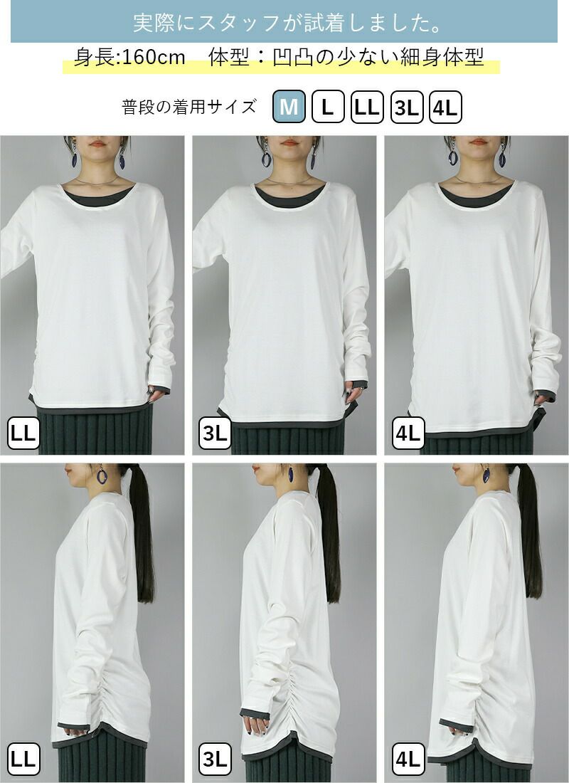 他の画像を見る 1枚で簡単にお洒落になれちゃう配色フェイクレイヤード!コットンの優しい着心地とくしゅくしゅシャーリングにヤミツキになる主役カットソー。 スムースコットンフェイクレイヤードくしゅくしゅシャーリングカットソー 【メール便対応可】 販売価格 ¥ 2,099 税込 カートに入れる お気に入りに登録する