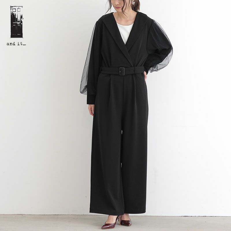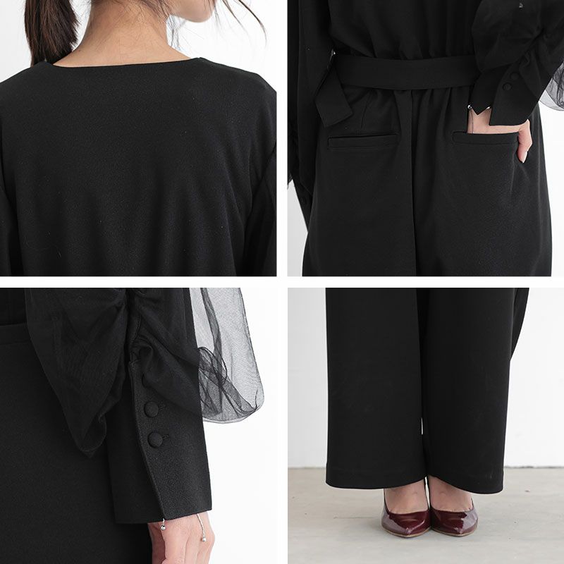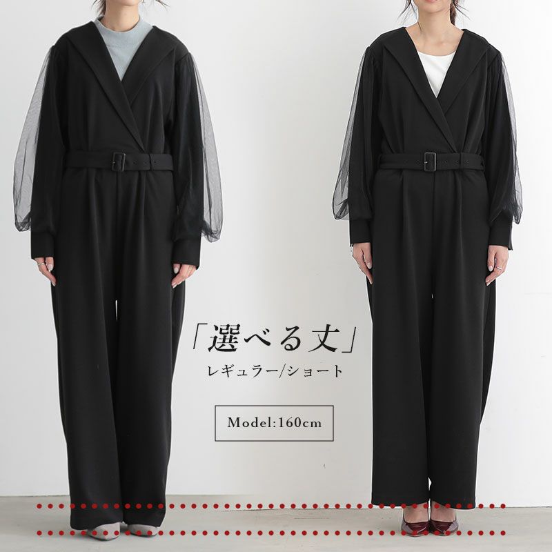 ブラック black 黒 オールインワン パンツ レディース ショート丈 ショート レギュラー丈 レギュラー Vネック シアー シアースリーブ ぽわん袖 ボリュームスリーブ 長袖 長そで タック デザインスリーブ ウエストベルト ゆったりパンツ タックパンツ ワイドパンツ 大きめサイズ 大きめ ゆったり 着回し オフィスカジュアル オフィス 仕事 通勤 OL 学校行事 学校 参観日 入園 入学 卒業 卒園 入園式 入学式 卒業式 卒園式 好印象 七五三 お宮参り 保護者会 発表会 ママ 母 母親 服装 服 成人式 結婚式 披露宴 二次会 謝恩会 ママスーツ スーツ フォーマル セレモニースーツ パーティー パーティ カジュアル ナチュラル おしゃれ オシャレ きれいめ キレイめ 上品 シンプル 服 新作 新着 スタイル ワントーンコーデ 30代 40代 50代 春 春服 春物 春夏 春夏服 春夏物 春夏服 夏 夏服 夏物 秋 秋服 秋物服 秋冬 秋冬服 秋冬物 冬 冬服 冬物 冬服 冬服 新作 新着 オールシーズン