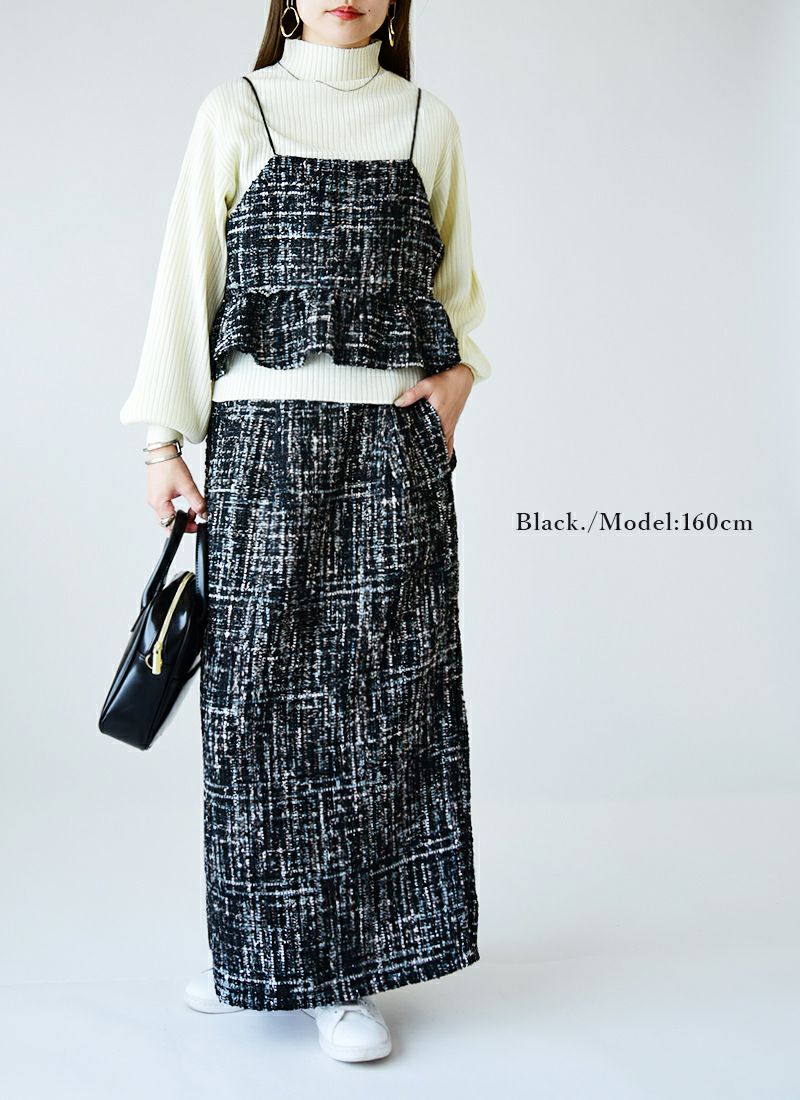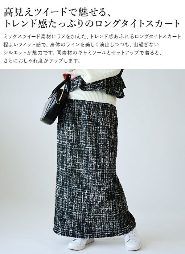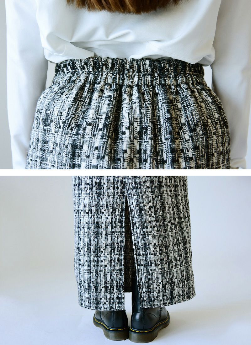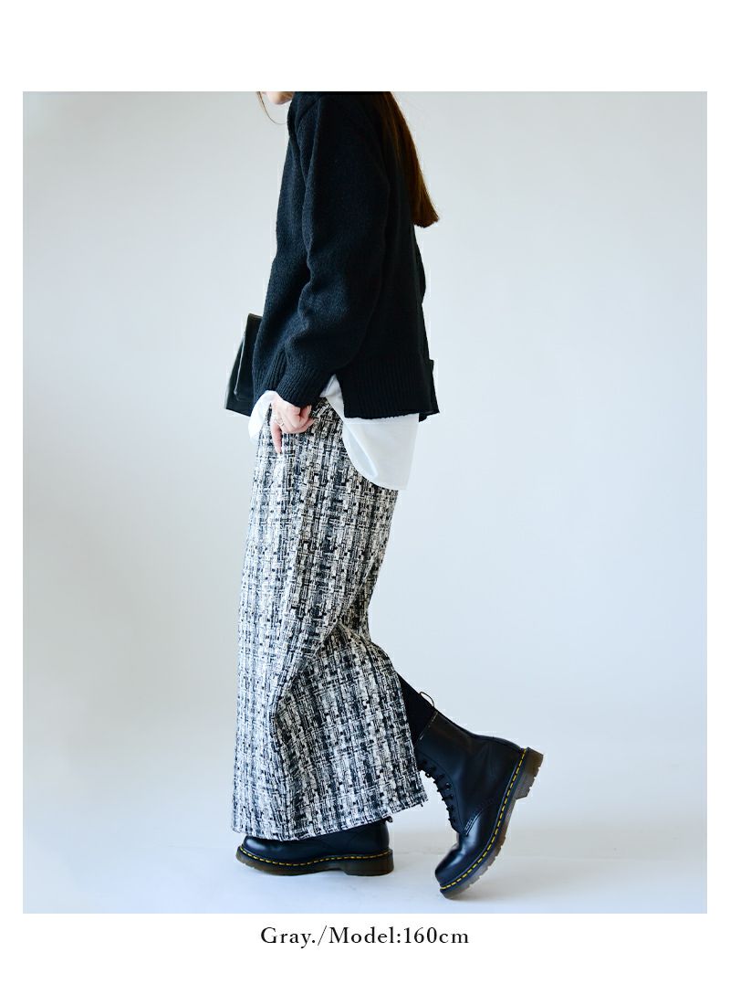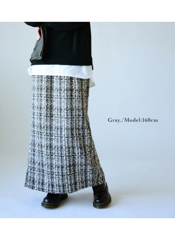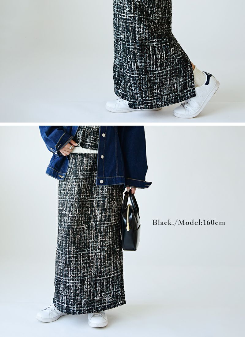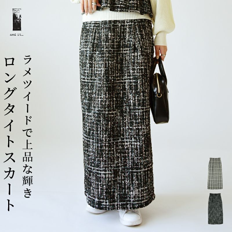 スカート レディース ミックス ツイード タイトスカート ボトムス ロング丈 ロングスカート タイトシルエット バックスリット 抜け感 お洒落 大人可愛い 上品 綺麗め ラメ ウエストゴム 楽ちん セットアップ グレー ブラック 黒 秋 冬 24aw AW, M エム andit_ and it_ andit ANDIT_ ANDIT あんどいっと アンドイット 新作 NEW カジュアル ナチュラル きれいめ 大人可愛い 大人女子 お洒落 トレンド シンプル ニュアンス プチプラ ファッション レディースファッション 20 30 40 50 20代 30代 40代 50代