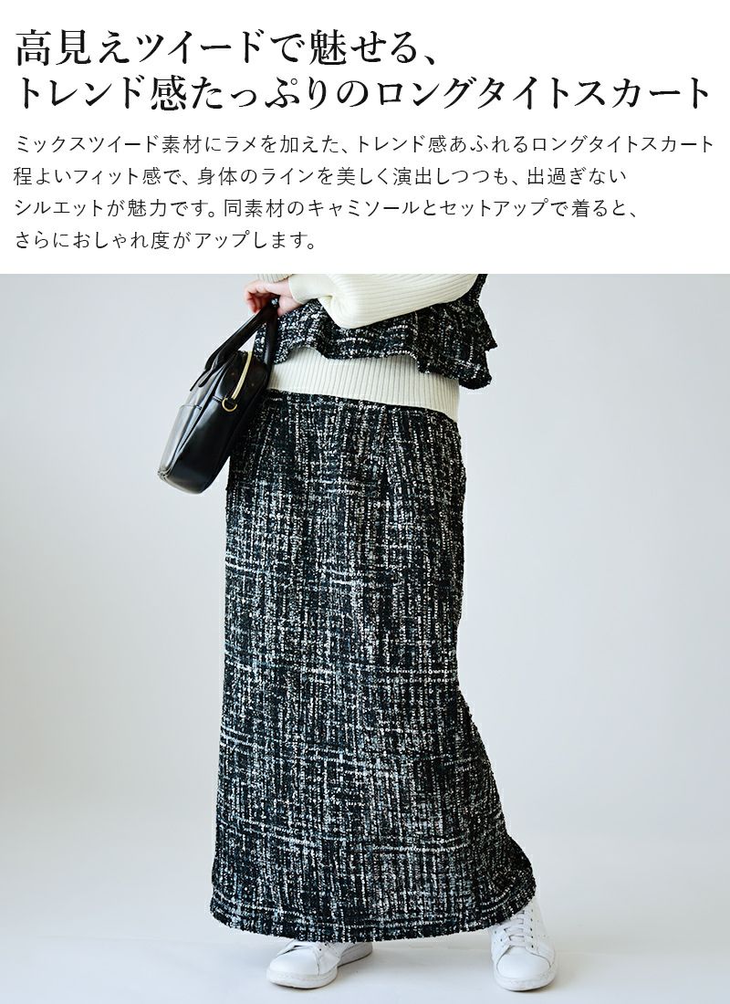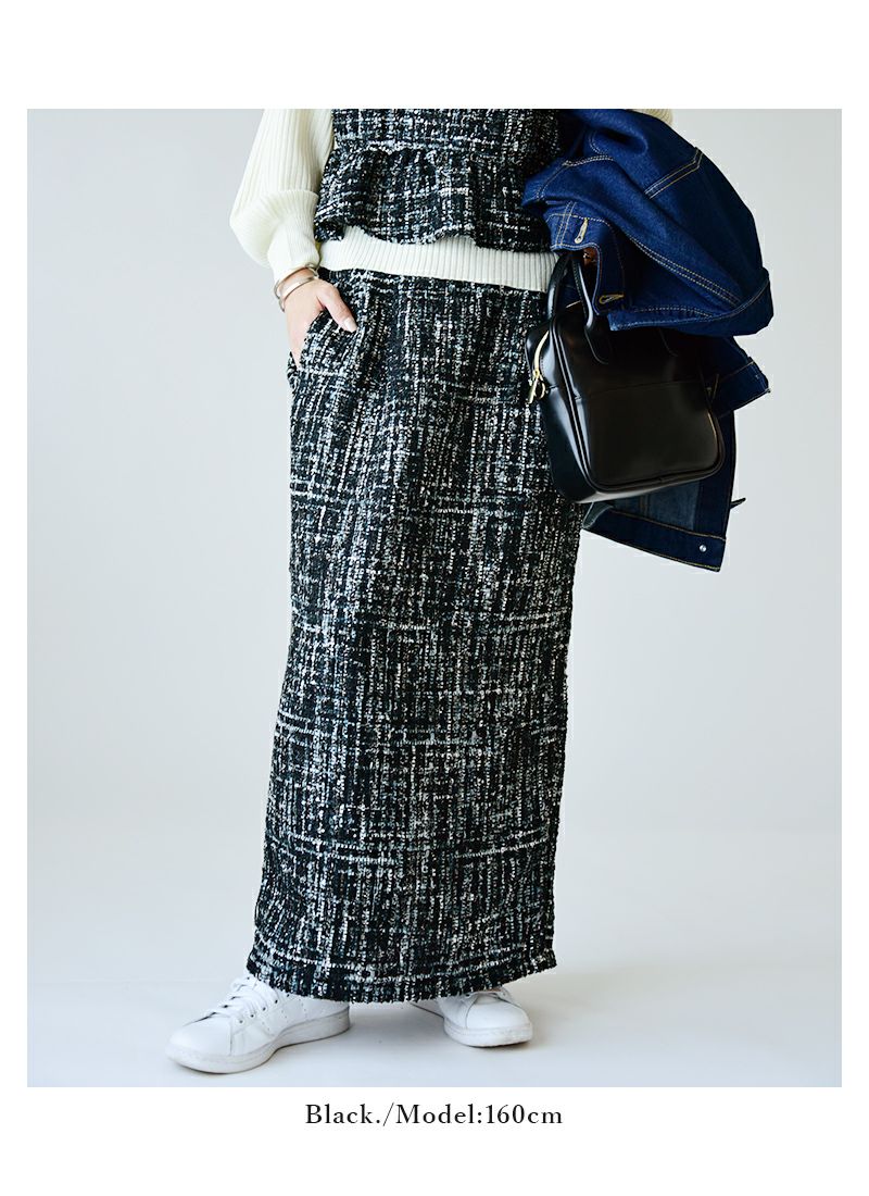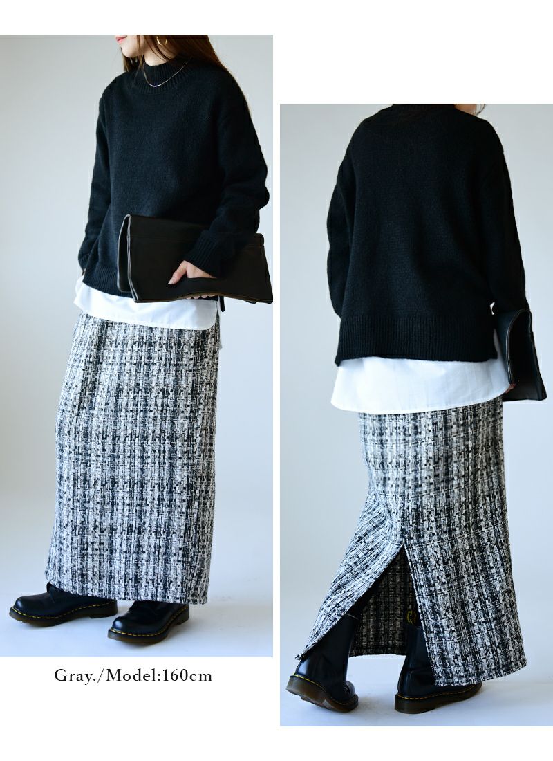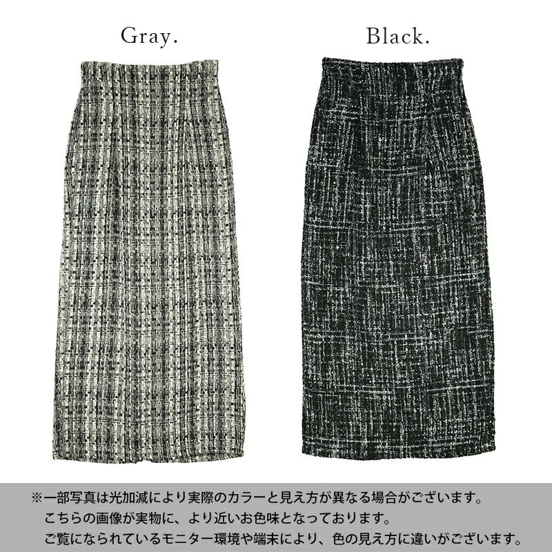他の画像を見る ラメ感が上品なツイード生地で大人な印象に。ラインを隠しつつ大人見えするタイトスカート♪ ミックスツイードタイトスカート M 【メール便対応不可】 販売価格 ¥ 5,599 税込 カートに入れる お気に入りに登録する