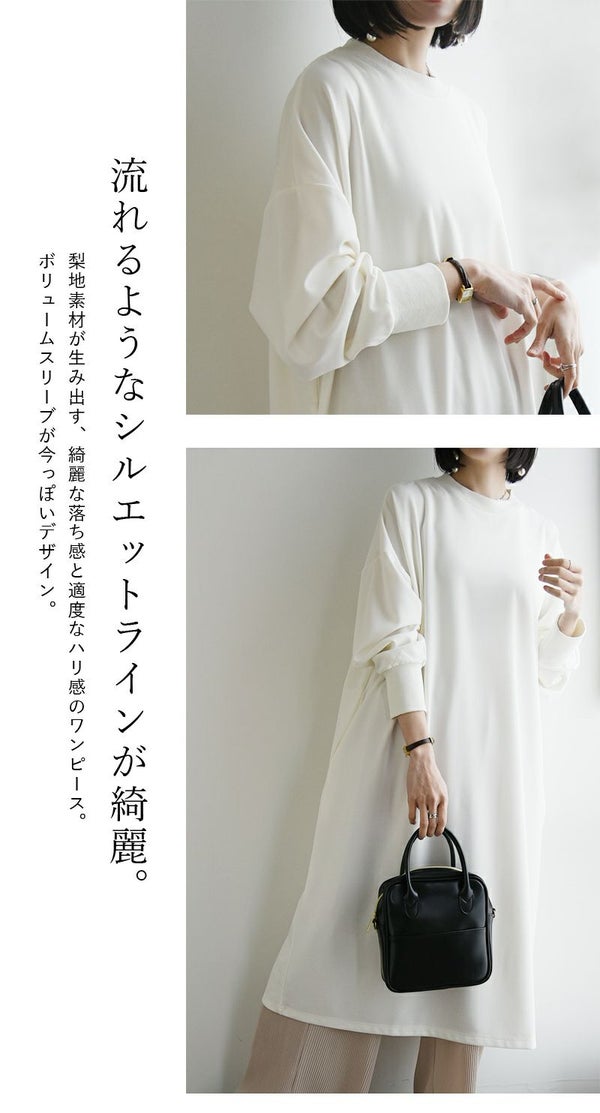 梨地ワイドシルエットワンピース M L 【メール便対応不可】