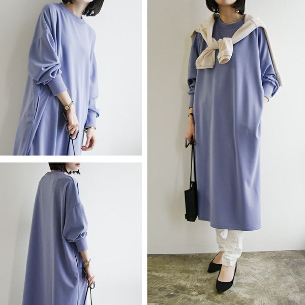 落ち感が綺麗なゆったりワンピース☆シワになりくくお手入れも簡単!