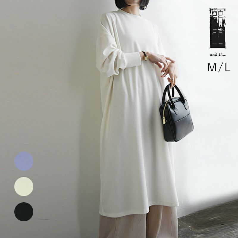 ワンピース ロングワンピ レディース 春 梨地 シワになりにくい お手入れ簡単 上品 きれいめ ワイドシルエット リラックス シンプル きれいめ 上品 綺麗 ゆったり 楽ちん ラフ カジュアル オフホワイト ブラック ブルーライラック 青 黒 白 andit_ and it_ andit ANDIT_ ANDIT あんどいっと アンドイット 2023 SS 新作 NEW カジュアル ナチュラル きれいめ 大人可愛い 大人女子 お洒落 トレンド シンプル ニュアンス M L Mサイズ Lサイズ M~L M-L ゆったり 楽ちん ラフ 体型カバー ぽっちゃり プチプラ ファッション レディースファッション ママ服 20 30 40 50 20代 30代 40代 50代