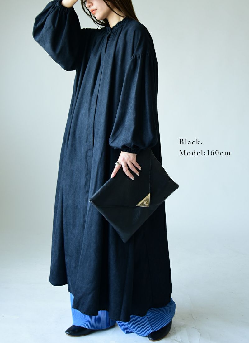 ワンピース レディース コーデュロイ 細畝 起毛 フリル ギャザー シャツワンピース シャツワンピ 長袖 羽織り ロング丈 ロングワンピ Aライン ゆったり 楽ちん 体型カバー ボリュームスリーブ ボリューム袖 ぽわん袖 ナチュラル カジュアル 大人可愛い ブラウン グレー ブラック 白 黒 秋 冬 24aw AW, M-L M L エム エル andit_ and it_ andit ANDIT_ ANDIT あんどいっと アンドイット 新作 NEW カジュアル ナチュラル きれいめ 大人可愛い 大人女子 お洒落 トレンド シンプル ニュアンス プチプラ ファッション レディースファッション 20 30 40 50 20代 30代 40代 50代