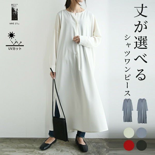 シャツ ワンピ シワ なりにくい シワになりにくい 丈が選べる 丈 選べる ミディアム ロング 低身長 高身長 ホワイト ブルーグレー ブルー 青 スミクロ 黒 レッド 赤 スキッパー 抜け感 すっきり イージーケア UV カット 紫外線対策 andit_ and it_ andit ANDIT_ ANDIT あんどいっと アンドイット 無地 Fサイズ フリーサイズ F ゆったり ワイド 楽ちん 春 夏 春夏 スプリング サマー ママ服 カジュアル 大人 トレンド レイヤード 大人女子 大人可愛い きれいめ ラフ シンプル ゆる 体型カバー カバー レディース ファッション レディースファッション 20 30 40 50 20代 30代 40代 50代