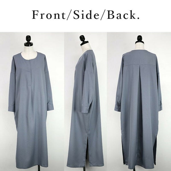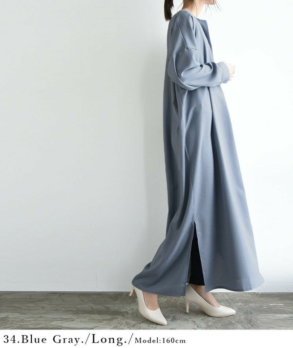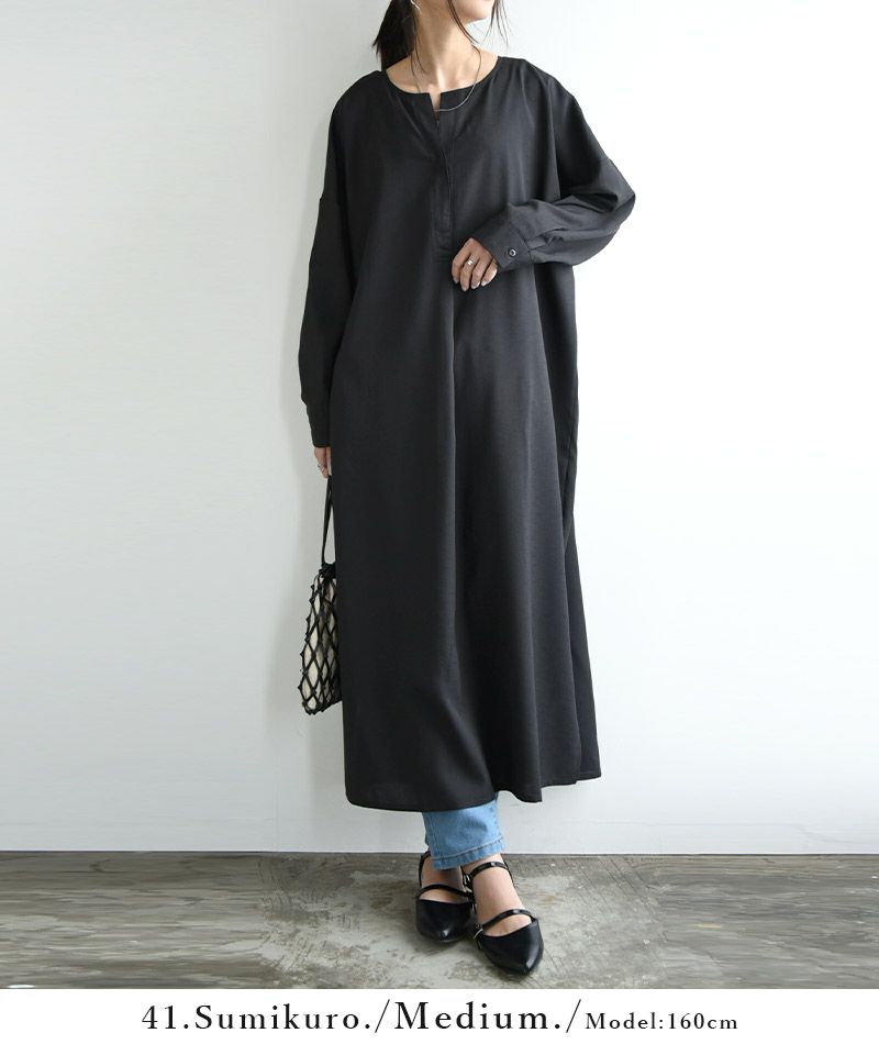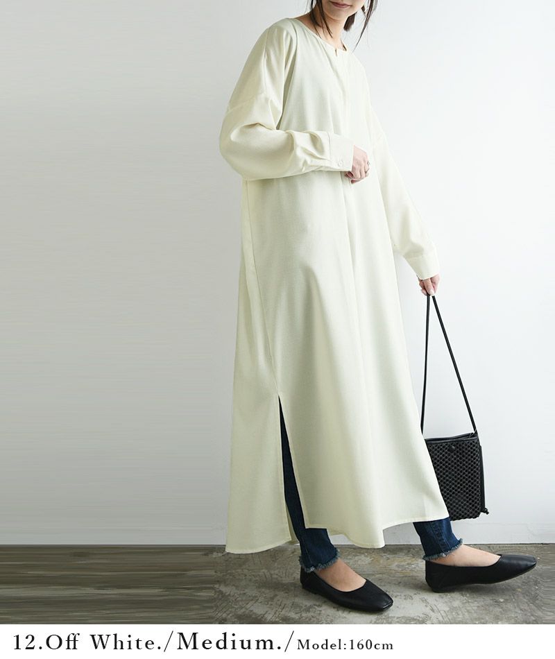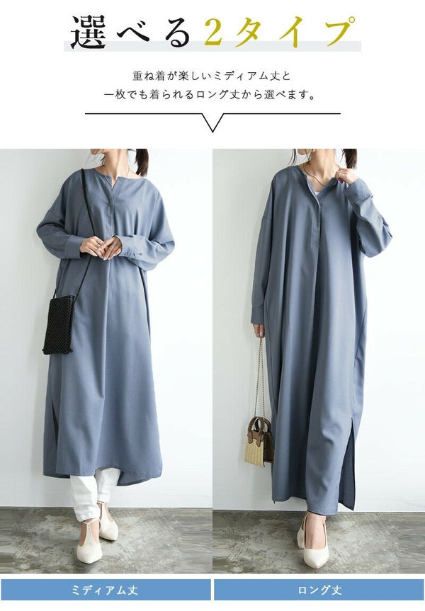 首元がスッキリした、大人っぽく着られる一枚◎お手入れ簡単で丈が選べるシャツワンピ。