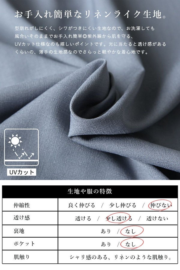 丈が選べるリネンライクスキッパーシャツワンピース F 【メール便対応可】
